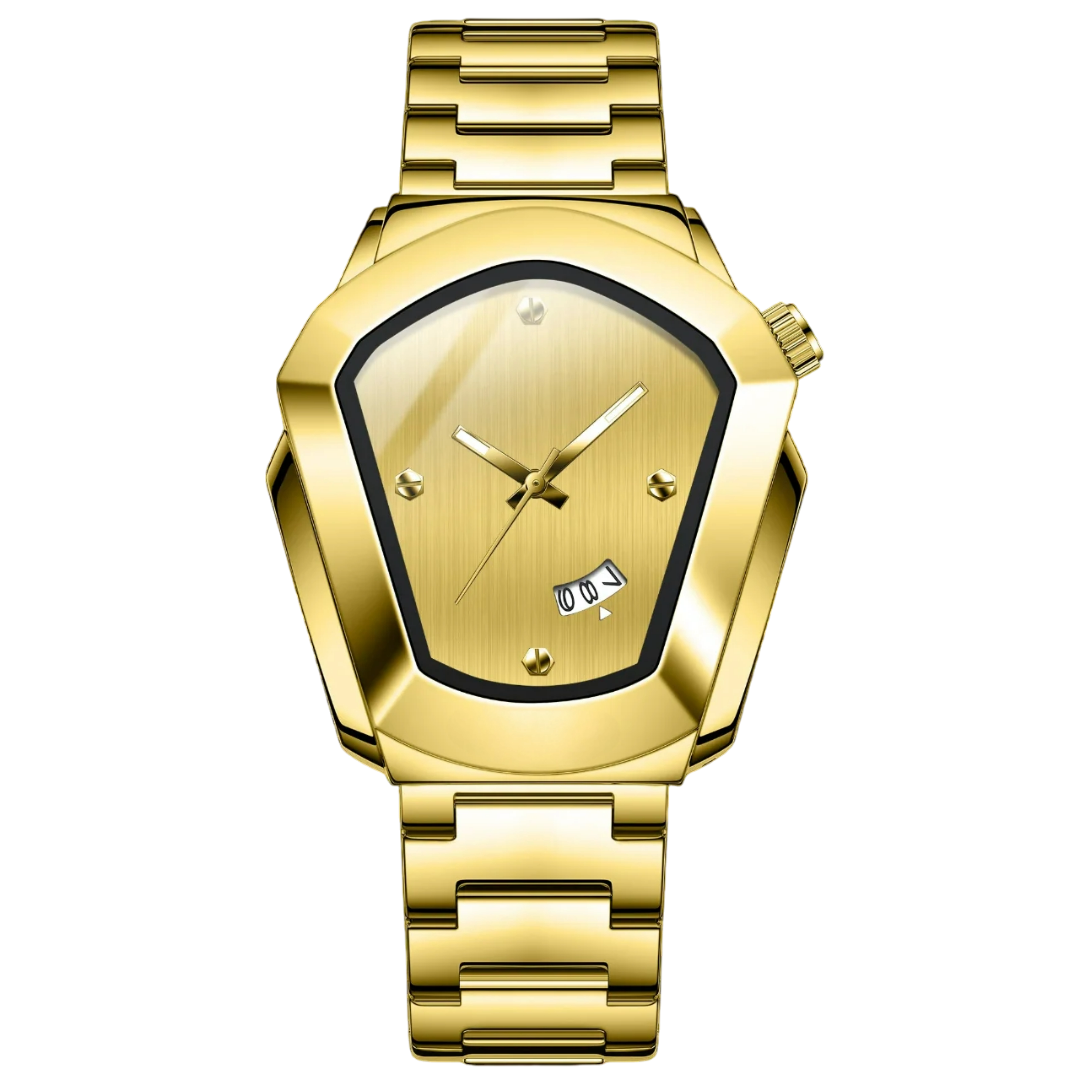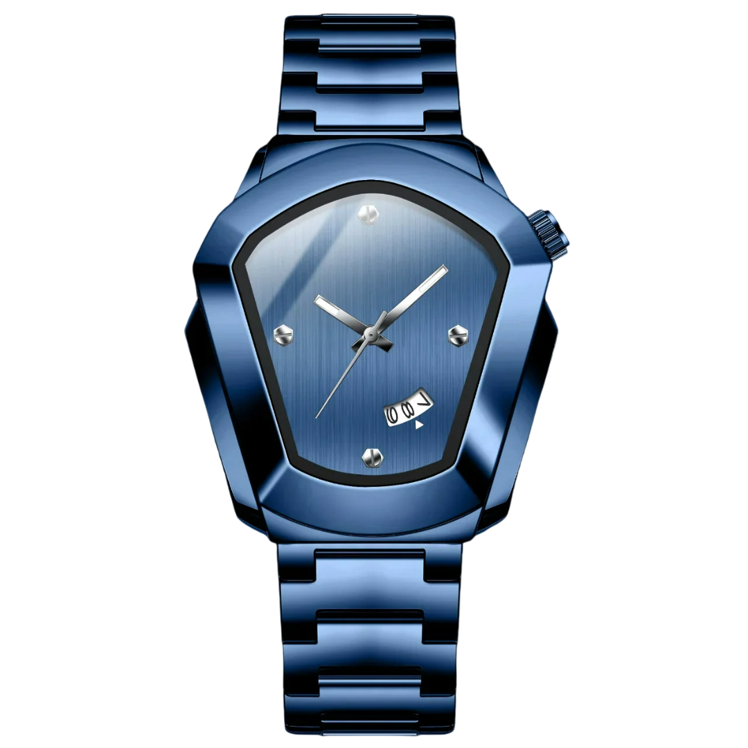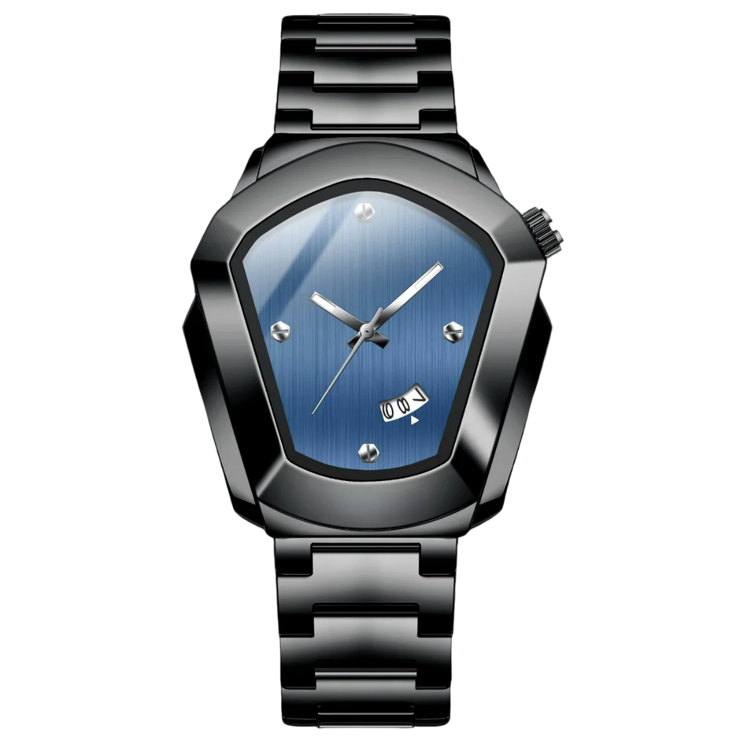 UNIQUE. AUDACIOUS. IRRESISTIBLE. This timepiece dares to challenge the ordinary with a design that instantly catches the eye. Its unconventional silhouette, minimalist dial, and refined detailing create a bold presence on the wrist. The integrated date feature adds a practical touch, perfectly complementing the watch’s striking allure and refined geometry.