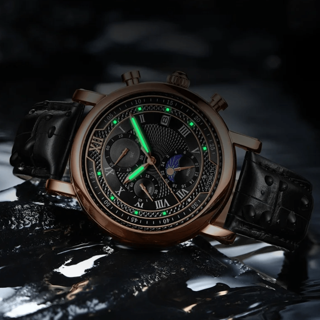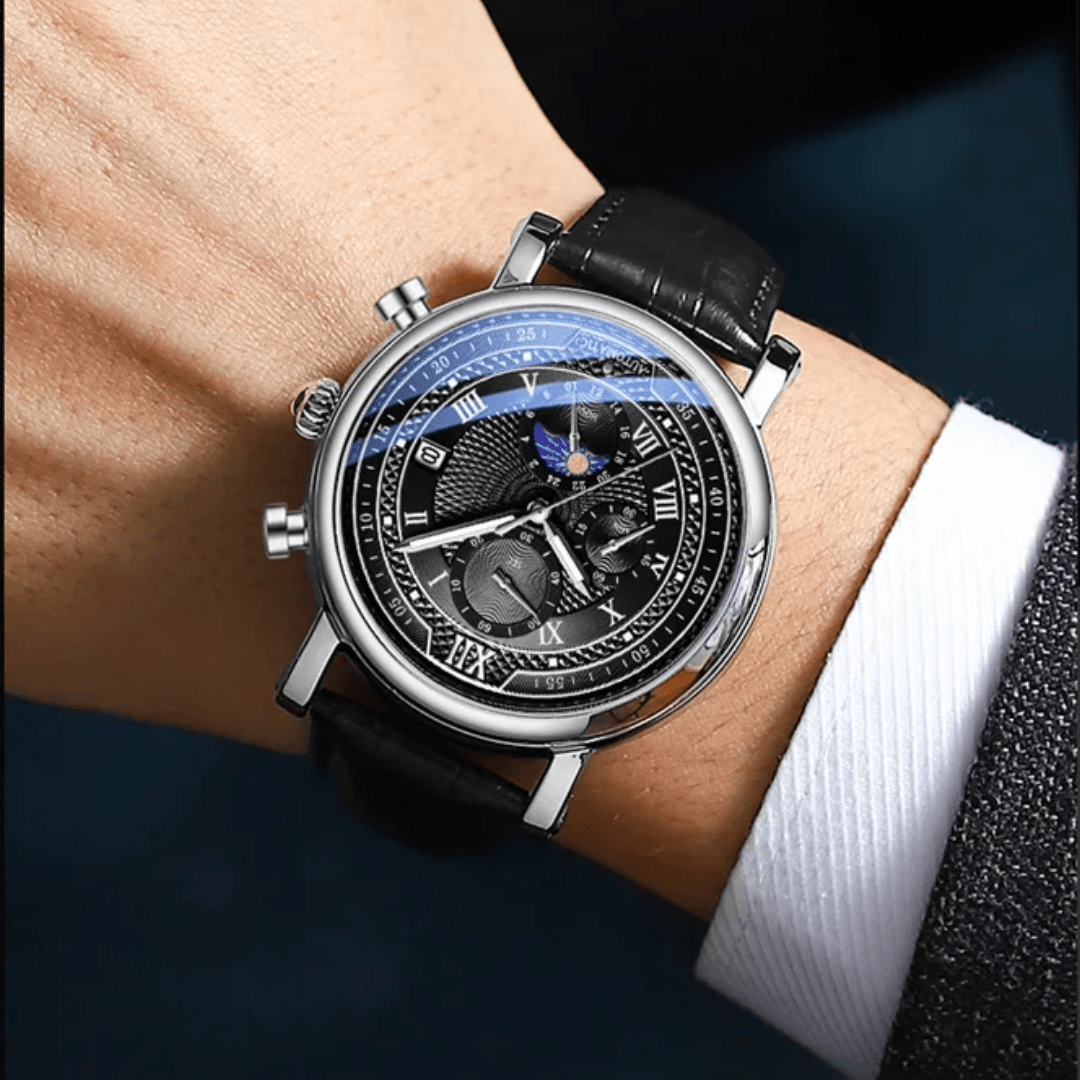 The Gravix watch is designed to withstand the elements, boasting an impressive water resistance depth of up to 100 bar, making it ideal for aquatic adventures or demanding environments. Its durable Hardlex dial window ensures protection, while the sleek, round alloy case complements a 44mm diameter, perfect for a bold, business-ready look. Powered by precise quartz movement, this watch includes key features like a luminous display, chronograph, and complete calendar functionality. With a comfortable 22mm alloy band and a secure buckle clasp, the Gravix combines style and strength for the modern man.