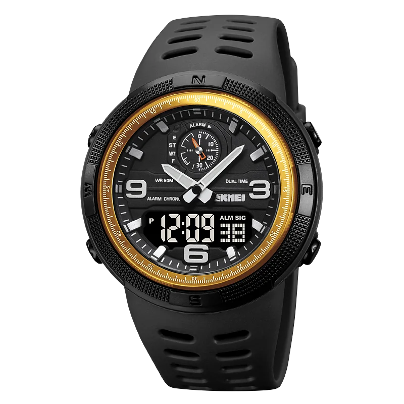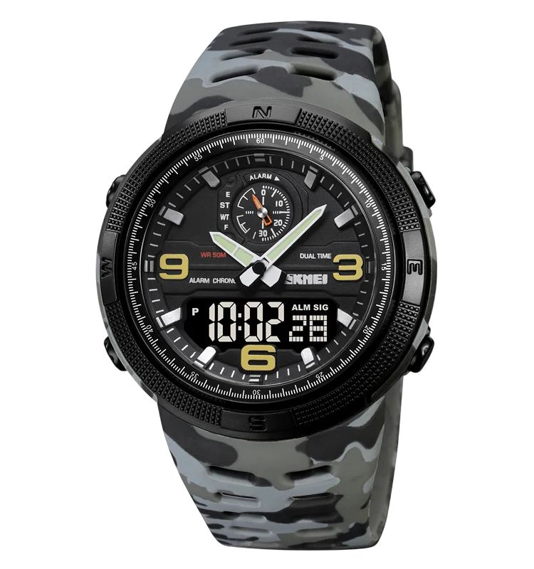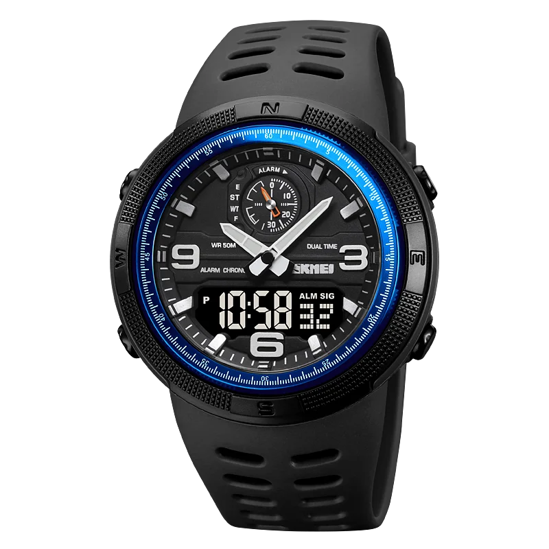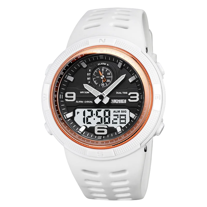 Materials: Polycarbonate case, Silicone strap, 5 Bar water resistance