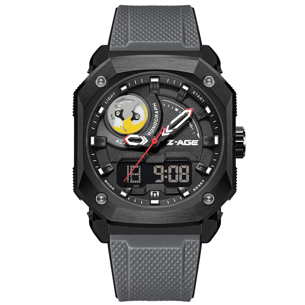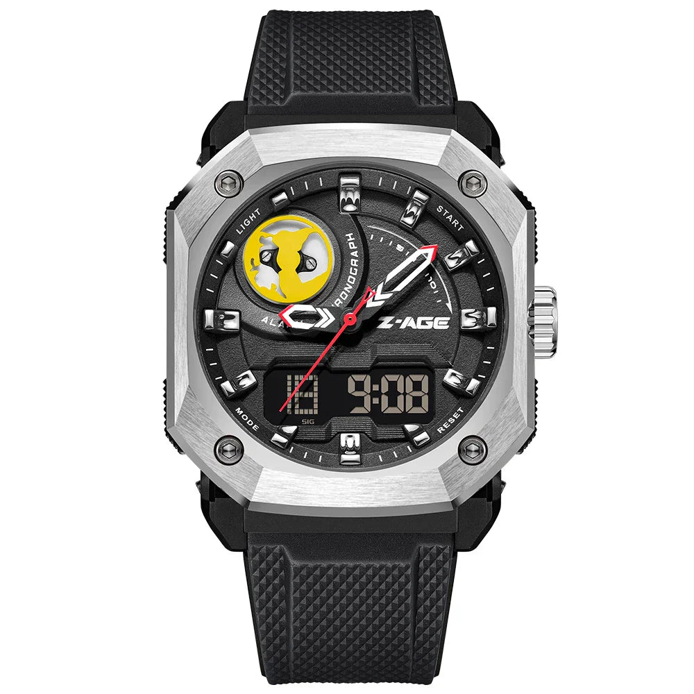 • Materials: STAINLESS STEEL case, Silicone strap, 5 Bar water resistance